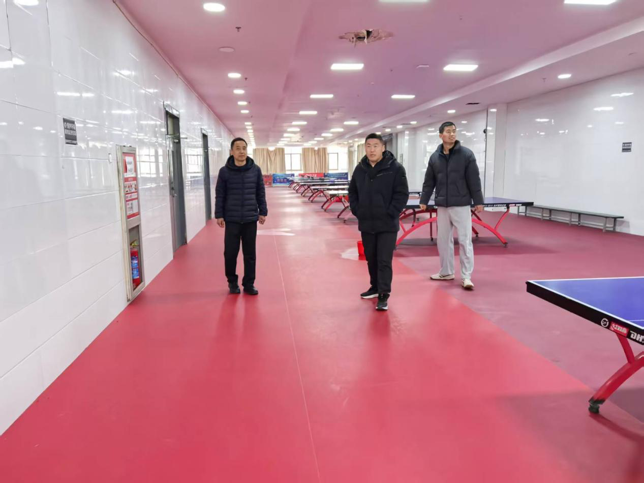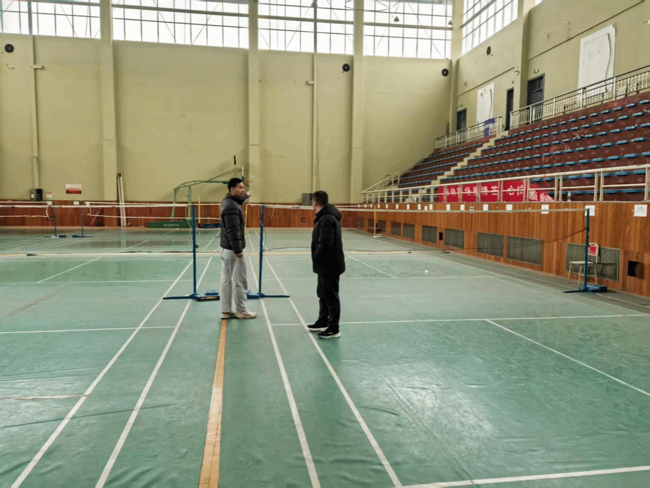 新学期即将开课,为确保教学秩序正常运行,防止安全事故的发生,2026年2月27日上午10点,千亿国际qy18vip王朝信副院长带队对体育馆、风雨操场、田径场、室外体育场所、实验室及器材设施等进行安全卫生检查,体育场馆管理中心副主任刘国聪、丁清州等负责同志参加。安全检查确保新学期运动环境质量,保障师生的体育活动安全。