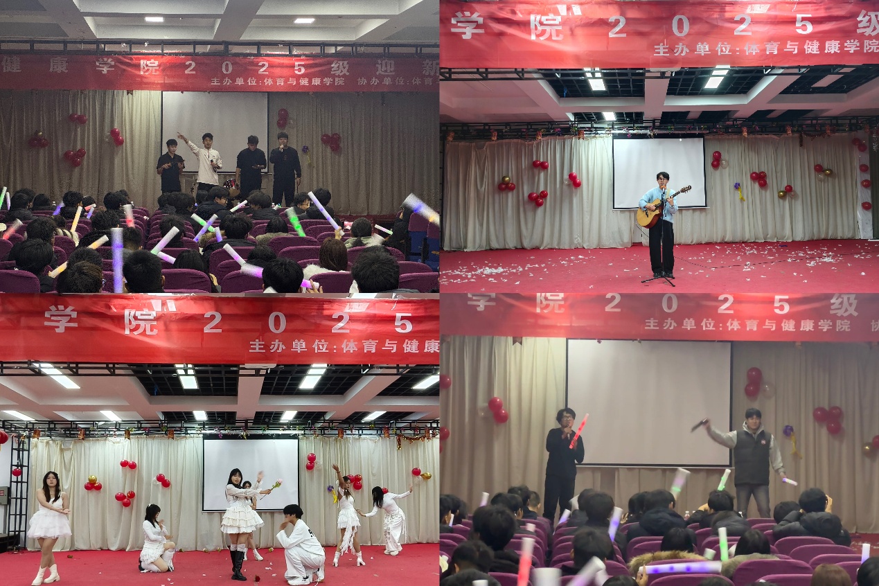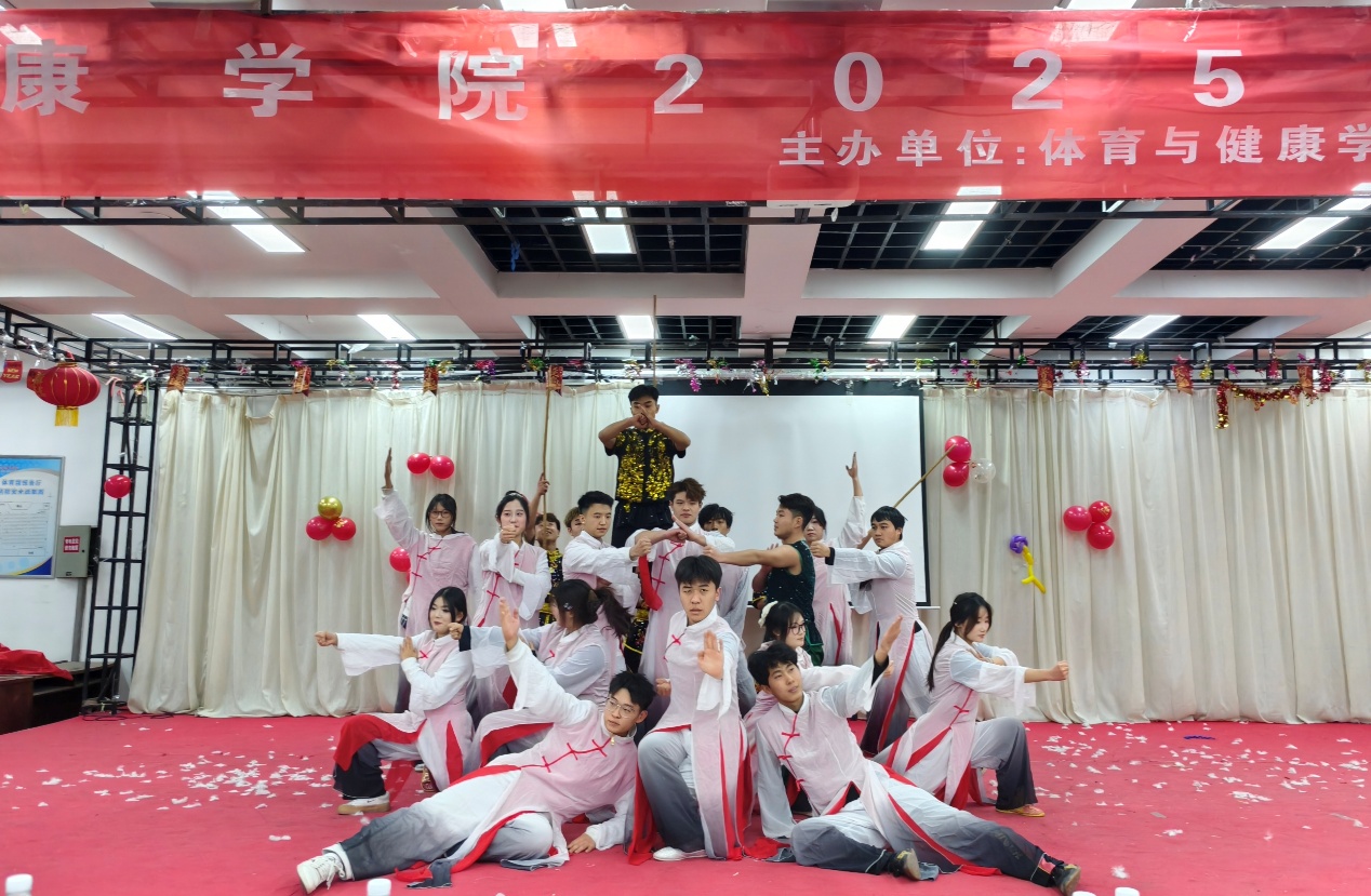 晚会现场气氛热烈,多元节目轮番登场,尽显体育学子的活力与才情。气势磅礴的开场舞狮瞬间点燃全场热情;婉转的歌曲演唱勾勒青春模样;动感的舞蹈表演展现少年朝气;散打、武术表演更是将体育专业特色展现得淋漓尽致,赢得满堂喝彩;热血的乐队演出则将晚会氛围推向高潮。台上表演者全情投入,台下老师与同学们掌声不断,喝彩连连。